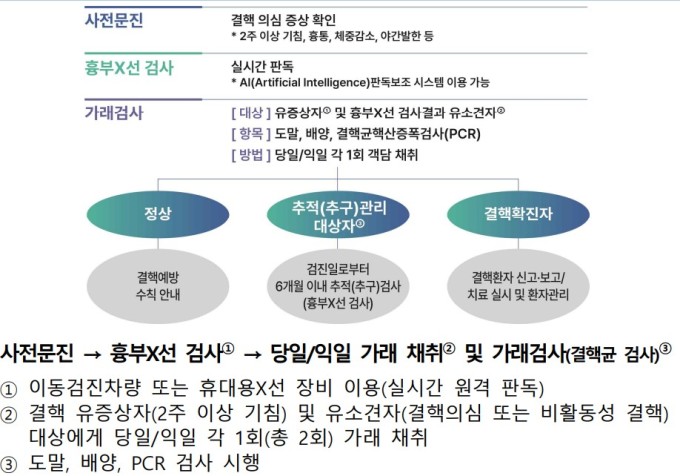질병청은 올해 찾아가는 결핵검진 사업을 통해 연 18만명의 검진을 목표로 하고 있다고 밝혔다. 노인의 경우 장기요양등급 판정자뿐 아니라 각 지자체에서 의료접근성 취약노인으로 발굴한 대상도 검진받을 수 있다.