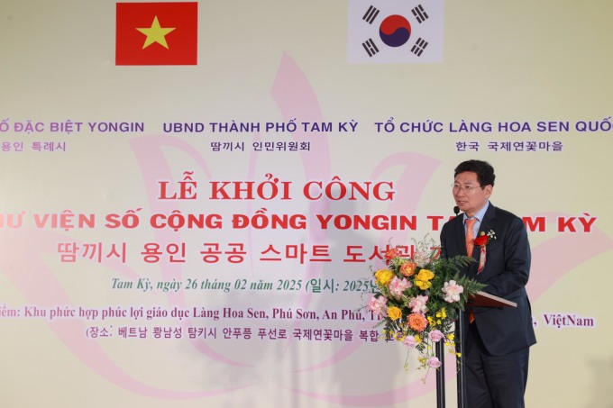 이상일 용인특례시장이 지난해 2월 26일 베트남 국제연꽃마을에서 개최한 용인 스마트 디지털도서관 착공식에 참석했다.[사진=용인]