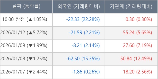 [표] 외국인ㆍ기관 순매매량 (단위 만주)