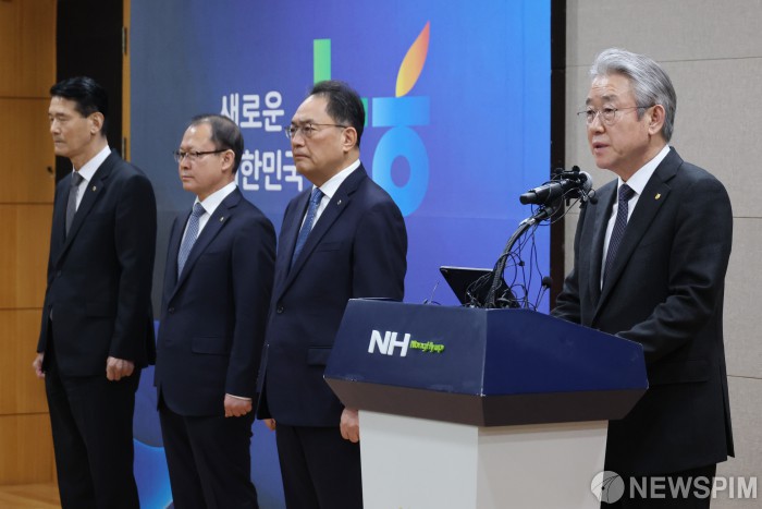 [서울=뉴스핌] 이형석 기자 = 강호동 농협 회장이 13일 오전 서울 중구 농협중앙회 본관에서 농림축산식품부 특별감사 중간결과 발표와 관련해 대국민 사과를 하고 있다. 강 회장은 조직 전반에 대한 쇄신 및 제도개선 방안을 발표하며 신뢰 회복에 나서겠다는 입장을 밝혔다. 2026.01.13 leehs@newspim.com
