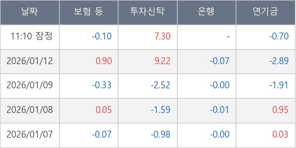 [표] 주요 기관별 순매매량 (단위 만주)