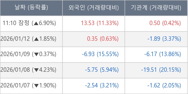 [장중수급포착] 포스코DX, 외국인/기관 동시 순매수… 주가 +6.90%