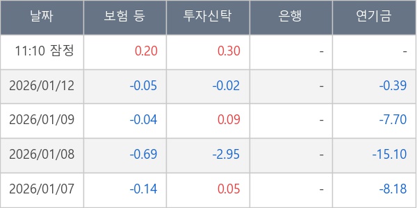 [표] 주요 기관별 순매매량 (단위 만주)