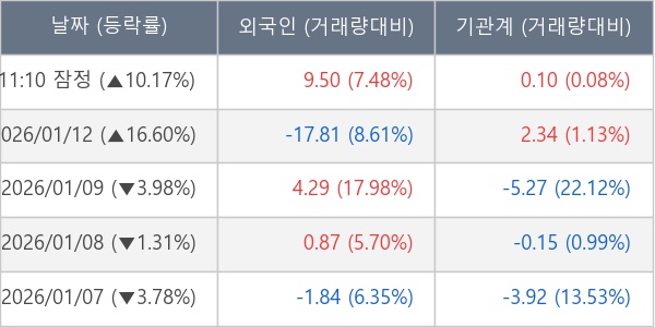 [표] 외국인ㆍ기관 순매매량 (단위 만주)