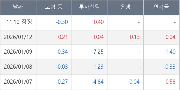[표] 주요 기관별 순매매량 (단위 만주)