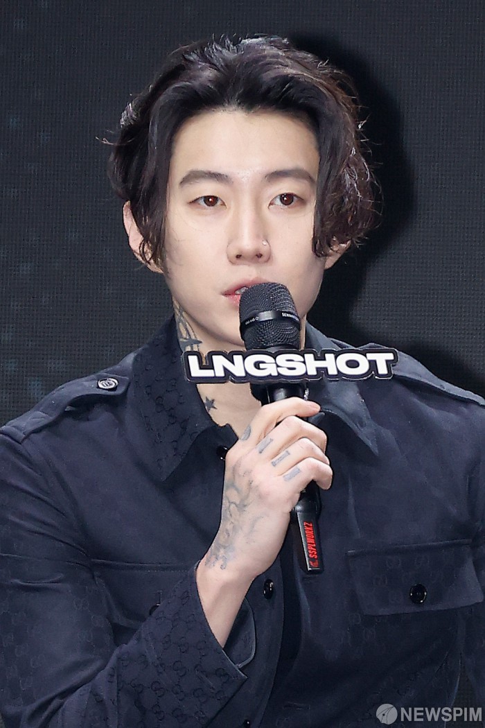[서울=뉴스핌] 류기찬 기자 = 가수 박재범이 13일 오후 서울 영등포구 명화라이브홀에서 열린 롱샷 데뷔 기념 쇼케이스에서 인사말을 하고 있다. 2026.01.13 ryuchan0925@newspim.com