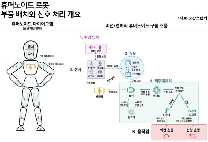 [서울=뉴스핌] 이홍규 기자 = 휴머노이드 로봇에서 새로운 투자 기회는 액추에이터(근육)와 센서(신경)에 집중돼 있다는 분석이 나온다. 휴머노이드 로봇이 연구실을 벗어나 공장과 가정으로 보급되려면 대량 생산이 필수다. 원가의 70% 안팎을 차지하며 인체의 근육과 신경에 해당하는 부품을 공급하는 업체가 주목받고 있다.
