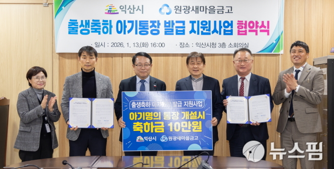 양측은 이날 시청 소회의실에서 업무협약을 체결했다. 원광새마을금고는 올해 익산 출생아 명의 통장 개설 시 10만원 축하금을 지원하고, 시는 읍면동 행정복지센터 등을 통해 홍보한다.