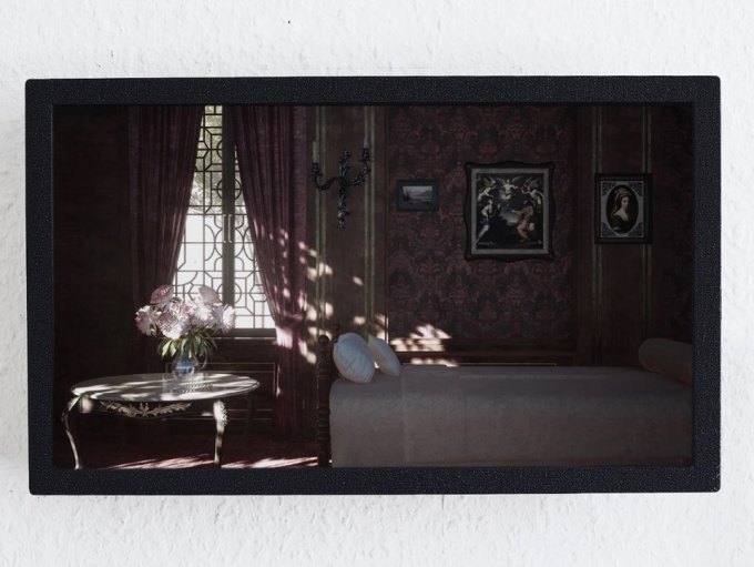 [서울=뉴스핌]이영란 미술전문기자=홍애린, '브랫(Brat)' 2025, 13인치 모니터, 2채널, 3D 애니메이션 비디오, 4K, 스테레오사운드,프린세스 메이커 2(manoano 제작) 배경 리마스터 버전, 설치 전경 [사진=작가 제공] 2026.01.13 art29@newspim.com