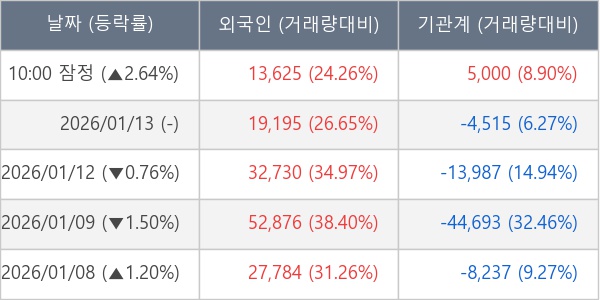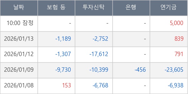 [표] 주요 기관별 순매매량 (단위 주)