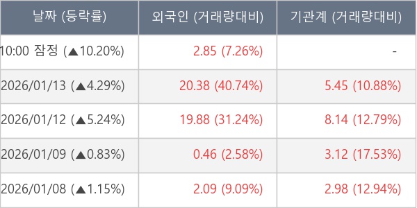 [장중수급포착] 한전기술, 외국인 8일 연속 순매수행진... 주가 +10.20%