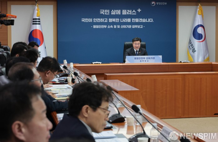 [서울=뉴스핌] 이길동 기자 = 윤호중 행정안전부 장관이 14일 서울 종로구 정부서울청사에서 열린 행정안전부 산하기관 (대한지방행정공제회, 한국지방재정공제회, 지방공기업평가원, 한국지방세연구원)업무보고에서 모두 발언을 하고 있다. 2026.01.14 gdlee@newspim.com