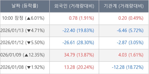 [표] 주요 기관별 순매매량 (단위 만주)