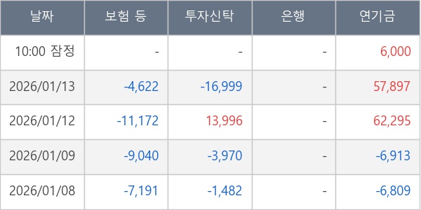 [표] 주요 기관별 순매매량 (단위 주)