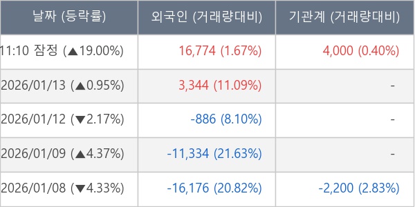 [장중수급포착] 탑엔지니어링, 외국인/기관 동시 순매수… 주가 +19.00%