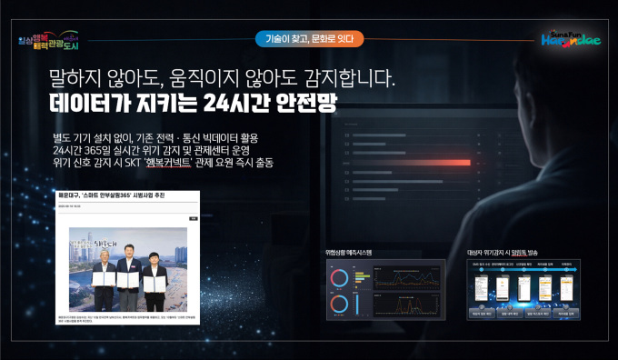기존 AI 음성통화 방식의 거부·무응답 사각지대를 보완한 이 사업은 대상자의 별도 응답 없이 생활데이터 사용 패턴 분석을 통해 이상 징후를 조기 감지한다. 관제센터 확인→현장 출동→행정복지센터 사례관리로 연계되는 데이터 기반 돌봄체계다.