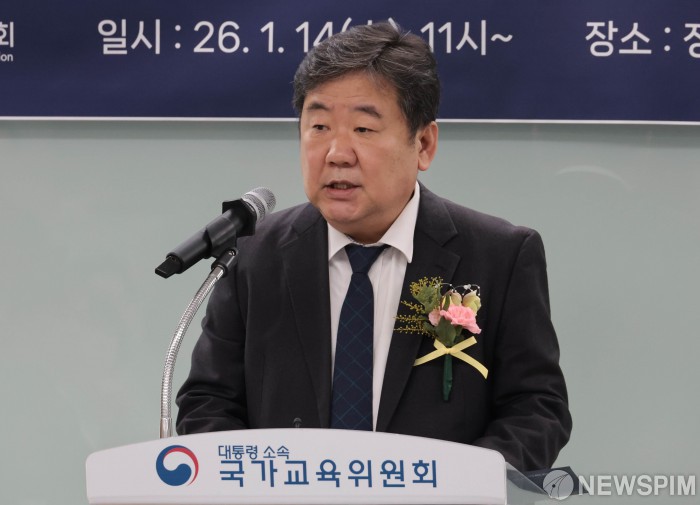 [서울=뉴스핌] 이길동 기자 =이광호 상임위원이 14일 서울 종로구 정부서울청사에서 열린 제2대 국가교육위원회 상임위원 취임식에서 취임사를 하고 있다. 2026.01.14 gdlee@newspim.com