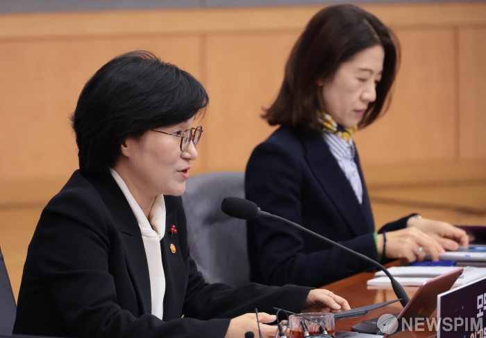 [서울=뉴스핌] 이길동 기자 = 원민경 성평등가족부 장관이 14일 서울 종로구 정부서울청사에서 열린 성평등가족부 산하 공공기관 업무보고에서 모두 발언을 하고 있다. 2026.01.14 gdlee@newspim.com