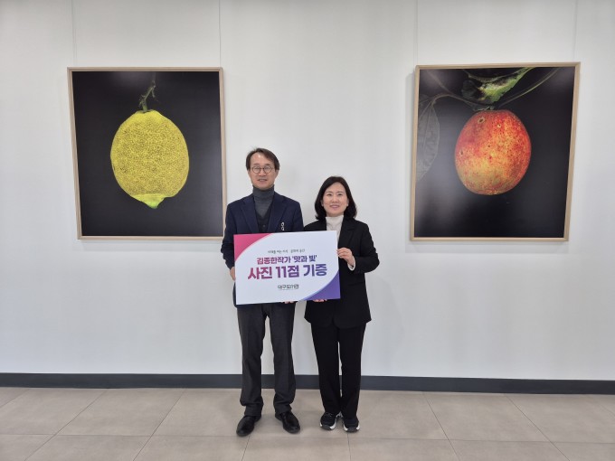 [대구=뉴스핌] 김용락 기자=대구도서관은 한국안광학진흥원장이자 사진작가로 활동중인 김종한 전 대구광역시 행정부시장과 14일 대구도서관 4층 회의실에서 사진작품 기증식을 개최했다. 김종한 작가는 2017년과 2024년 두 차례 개인 사진전을 개최한 바 있으며, 이번에 기증한 작품은 두 번째 개인전에 전시된 작품 중 일부로 '맛과 빛'이라는 주제로 일상에서 쉽게 접할 수 있는 과일 속 과육의 맛을 빛으로 표현한 것이 특징이다.