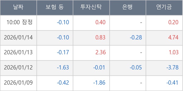 [표] 주요 기관별 순매매량 (단위 만주)