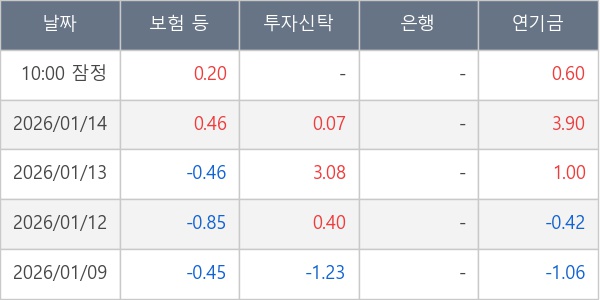 [표] 주요 기관별 순매매량 (단위 만주)
