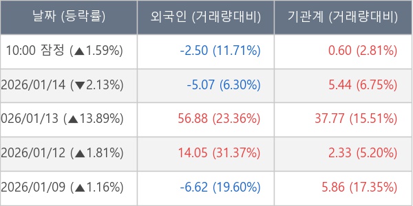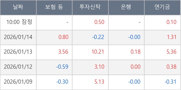 [표] 주요 기관별 순매매량 (단위 만주)