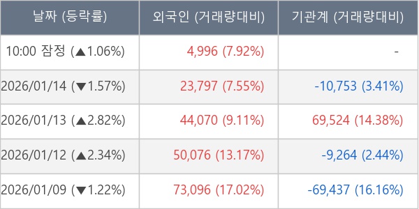 [표] 외국인ㆍ기관 순매매량 (단위 주)