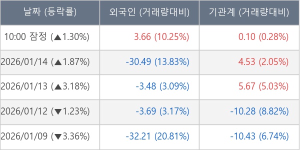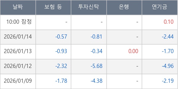 [표] 주요 기관별 순매매량 (단위 만주)