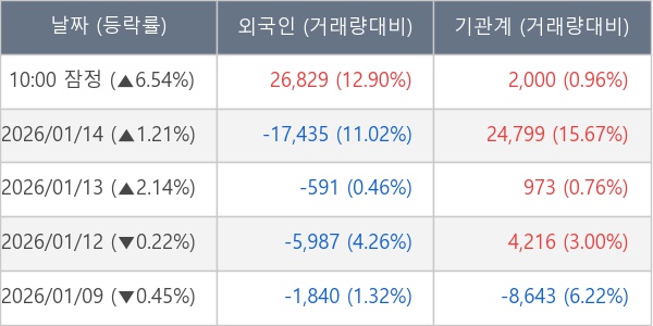 [장중수급포착] 레인보우로보틱스, 외국인/기관 동시 순매수… 주가 +6.54%