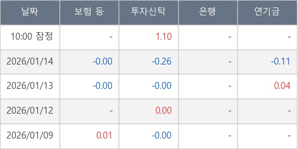 [표] 주요 기관별 순매매량 (단위 만주)
