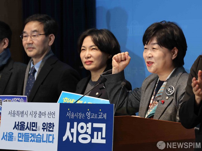 [서울=뉴스핌] 윤창빈 기자 = 서영교 더불어민주당 의원이 15일 서울 여의도 국회에서 6.3 지방선거 서울시장 출마 선언을 하고 있다. 2026.01.15 pangbin@newspim.com