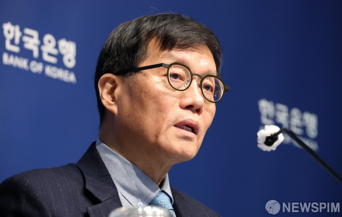 [서울=뉴스핌] 정일구 기자 = 이창용 한국은행 총재가 15일 오전 서울 중구 한국은행에서 열린 통화정책방향 기자간담회에서 발언하고 있다. 한은 금융통화위원회는 이날 새해 첫 회의에서 기준금리를 연 2.50%로 5연속 동결했다. 2026.01.15 mironj19@newspim.com