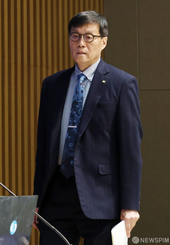 [서울=뉴스핌] 정일구 기자 = 이창용 한국은행 총재가 15일 오전 서울 중구 한국은행에서 열린 통화정책방향 기자간담회에 참석하고 있다. 2026.01.15 mironj19@newspim.com