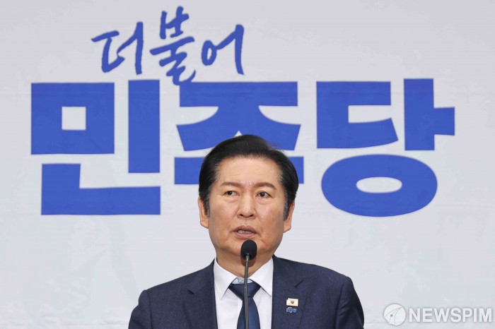 [서울=뉴스핌] 윤창빈 기자 = 정청래 더불어민주당 대표가 15일 서울 여의도 국회에서 열린 의원총회에서 모두발언을 하고 있다. 2026.01.15 pangbin@newspim.com