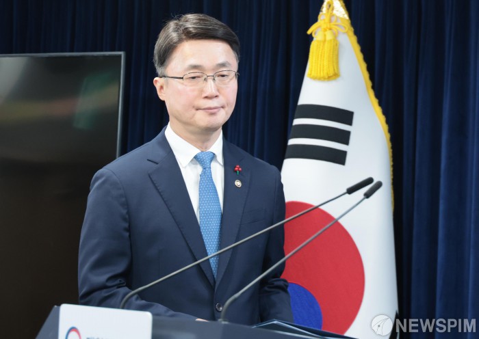 [서울=뉴스핌] 이길동 기자 = 류제명 과학기술정보통신부 제2차관이 15일 독자 AI 파운데이션 모델 프로젝트 1차 단계 평가 결과를 발표를 위해 입장하고 있다. 2026.01.15 gdlee@newspim.com