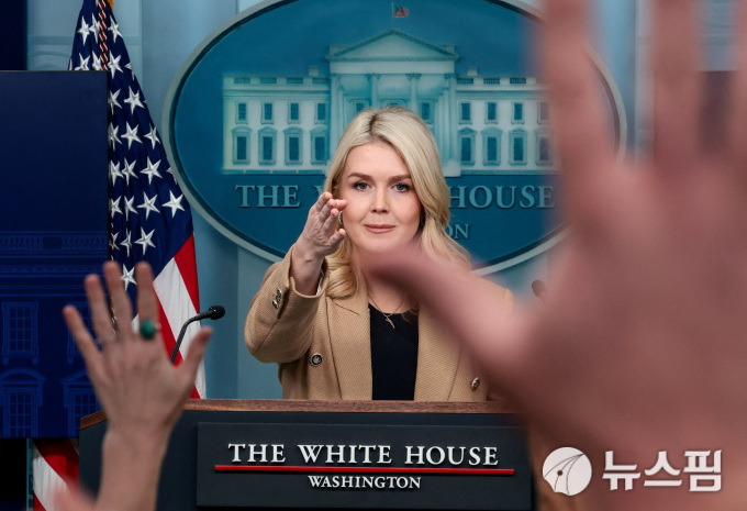 2026년 1월 15일 미국 워싱턴 D.C. 백악관에서 카롤라인 레빗 백악관 대변인이 브리핑을 하는 동안, 기자들이 질문을 하기 위해 손을 들고 있다. [사진=로이터 뉴스핌]