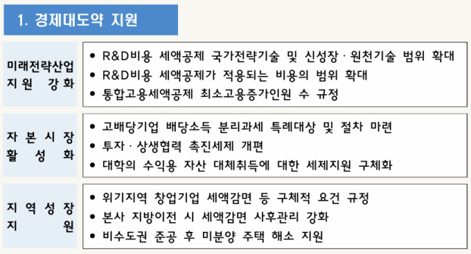 해외투자·지역이전·미분양 주택까지 세제 지원 확대