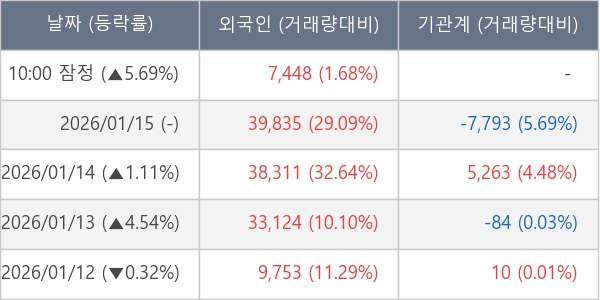 [표] 외국인ㆍ기관 순매매량 (단위 주)