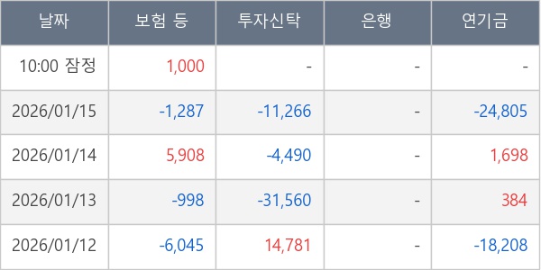 ※ 사모펀드 등 일부 기관의 순매매량은 표시되지 않음