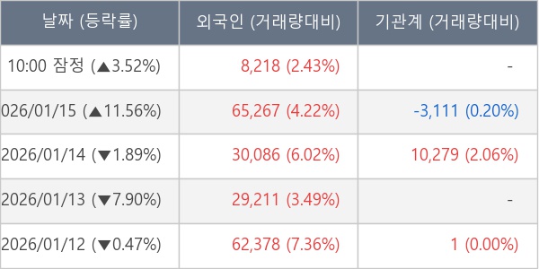 [표] 외국인ㆍ기관 순매매량 (단위 주)