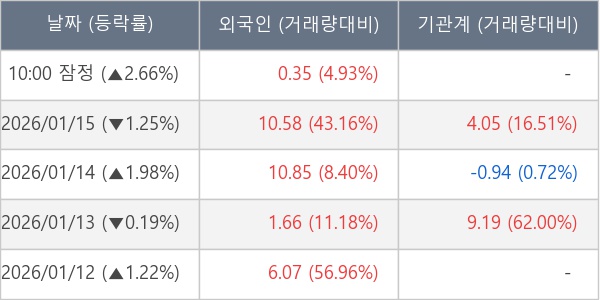 [표] 외국인ㆍ기관 순매매량 (단위 만주)