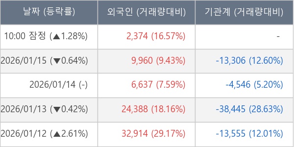 [표] 외국인ㆍ기관 순매매량 (단위 주)