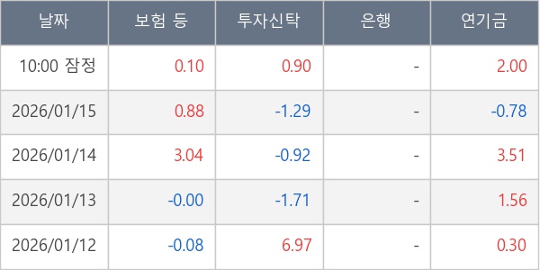 [표] 주요 기관별 순매매량 (단위 만주)
