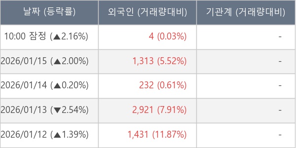 [장중수급포착] 로지시스, 외국인 5일 연속 순매수행진... 주가 +2.16%