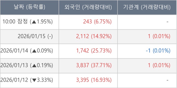 [표] 외국인ㆍ기관 순매매량 (단위 주)