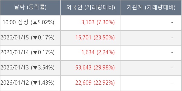 [표] 외국인ㆍ기관 순매매량 (단위 주)