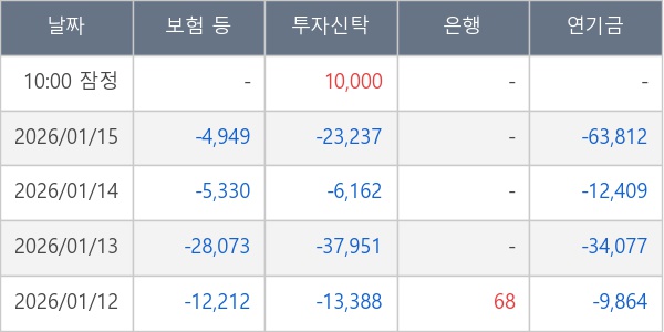 [표] 주요 기관별 순매매량 (단위 주)