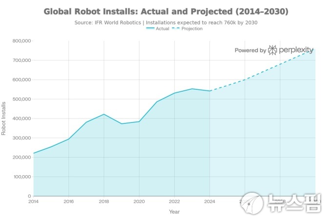 국제로봇연맹(IFR)의 최신 통계를 보면 2024년 전 세계 공장에 설치된 산업용 로봇은 54만2000대로, 10년 전의 두 배가 넘는다. 이 중 74%가 아시아에 설치됐고 그 절반 이상이 중국에 집중됐다. 누가 더 많은 로봇을 더 빠르고 더 싸게, 더 똑똑하게 깔아놓을 것인가를 둘러싼 피지컬 AI의 경쟁에서 지는 쪽은 단순히 한 산업을 잃는 것이 아니라 국가 경제와 안보, 노동 질서를 통째로 내줄지도 모른다는 긴장감이 고조됐다.