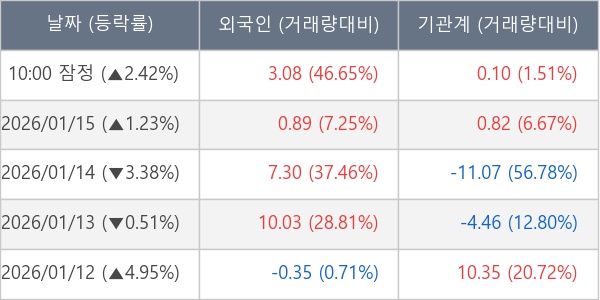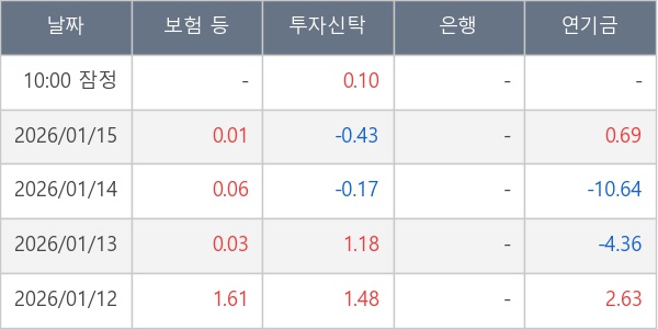 [표] 주요 기관별 순매매량 (단위 만주)