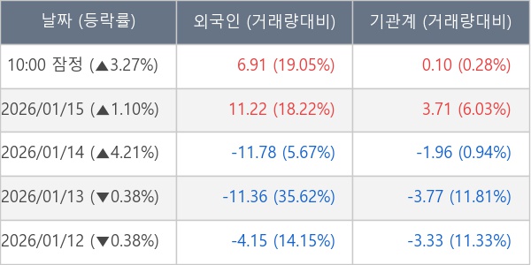 [표] 외국인ㆍ기관 순매매량 (단위 만주)